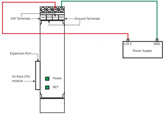 Figure 1 shows how to power up the GSMLTE Module. Module operation will voltage provide via power supply. If the wiring is correctly done the Power indication LED will turn on.