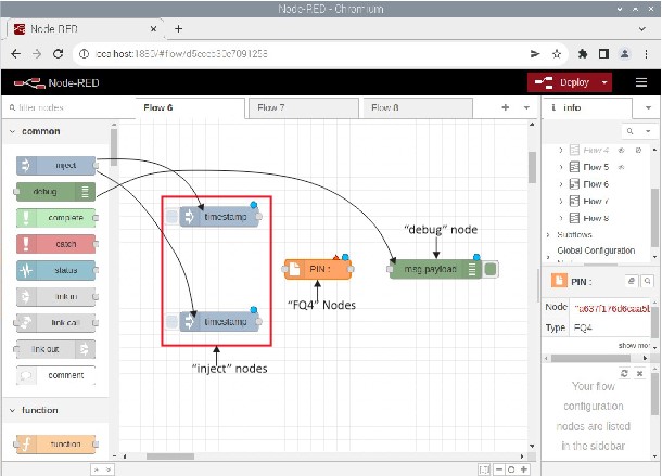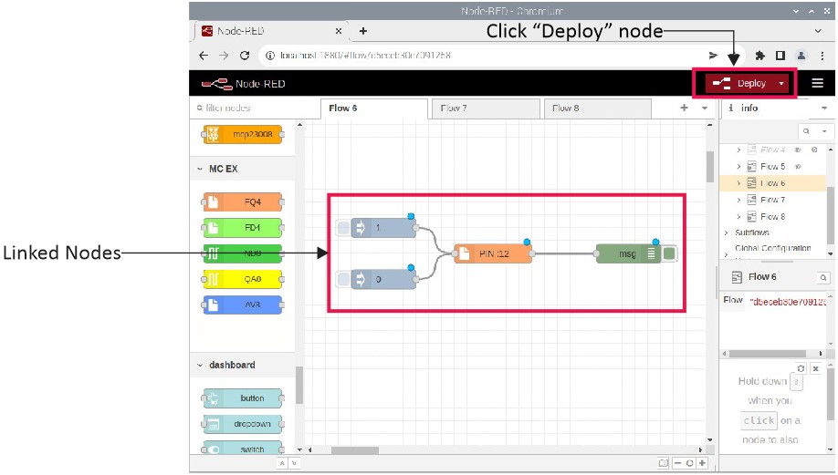 - Link The nodes according to Figure 8, Now click “Deploy” button for run Node-Red program.