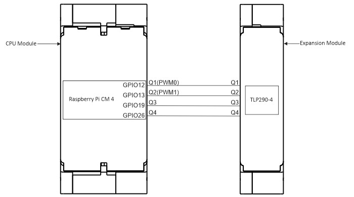 Pin Allocation Figure 1: The GPIO allocation with CPU module and Expansion Module. INPUTGPIOQ1GPIO12Q2GPIO13Q3GPIO19Q4GPIO26Table 1: GPIO Allocation. Doc navigation← DatasheetExpansion Module Node-Red Startup Guide → Was this article helpful to you? Yes No How can we help? Name Email subject message