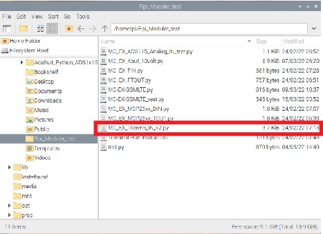 - Follow the File Manager > Pi > Rpi_Moduler_test path, then open Rpi_Moduler_test folder.